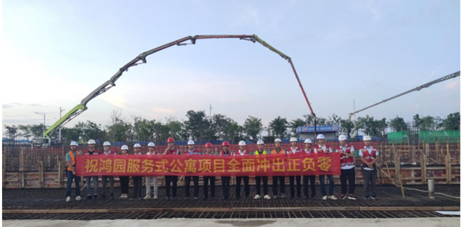 2022年5月22日下午17時30分,隨著地下室頂板最后一車混凝土澆筑完成,鴻寶集團海南鴻園服務式公寓項目順利沖出正負零關鍵節點。