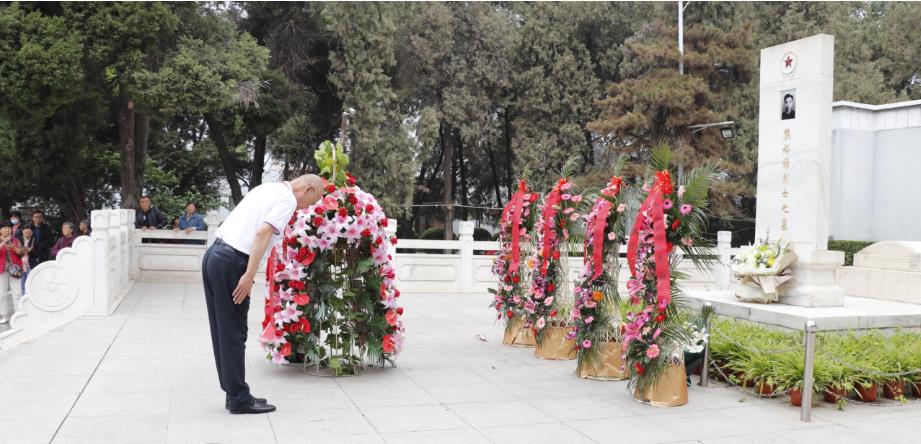 觀影后,大家步行至焦裕祿陵墓,列隊肅立,鴻寶集團黨委書記鄧和平向焦裕祿同志敬獻花籃,全體人員三鞠躬,依次繞陵一周瞻仰焦裕祿烈士陵墓,獻上鮮花,致敬忠魂,寄托哀思。